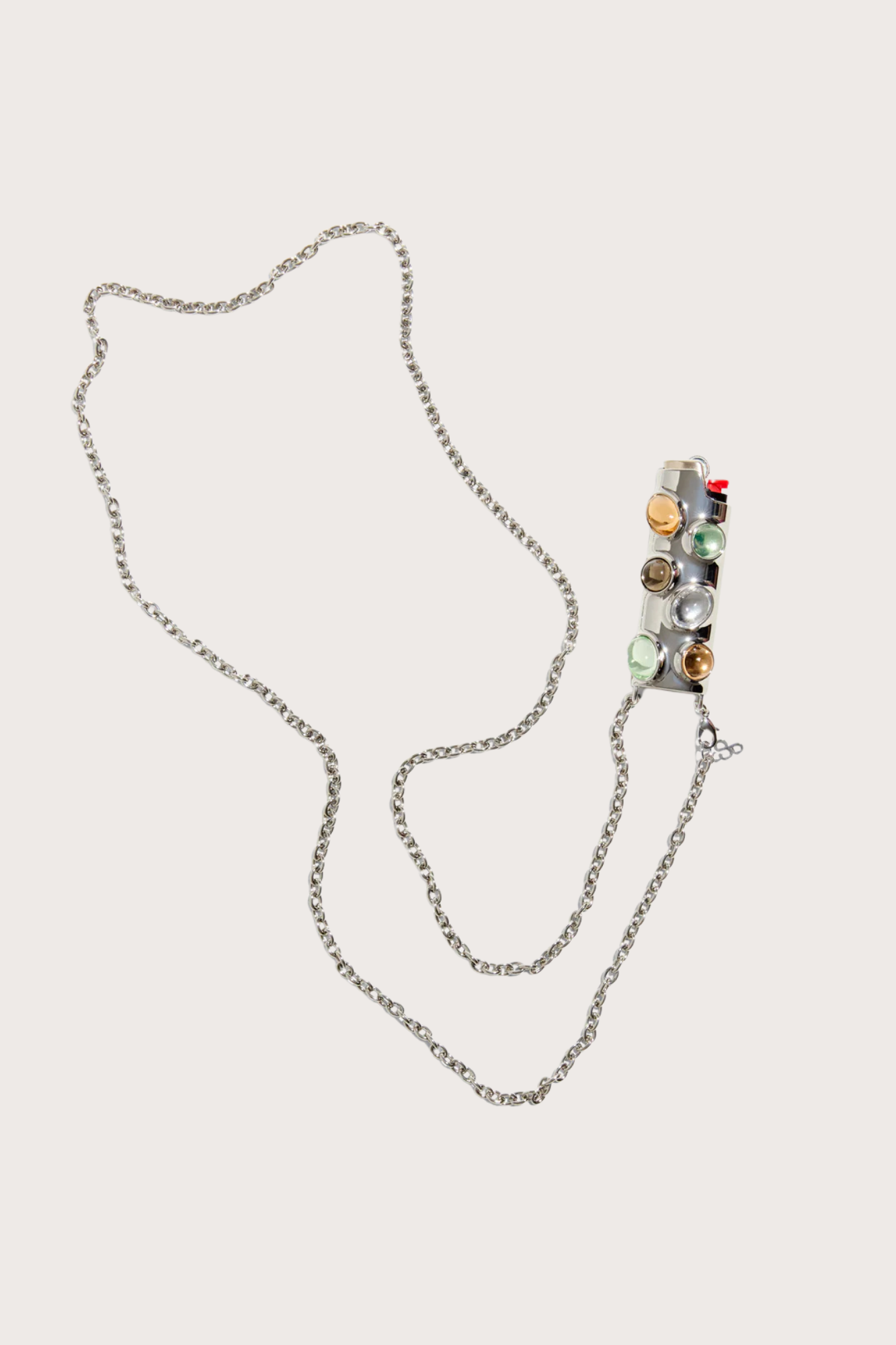 Lighter jewelry, if you will. Add shine to your lighter with a Gemstoned lighter cover on a crossbody chain with our new gemstone colorway, Khaki.