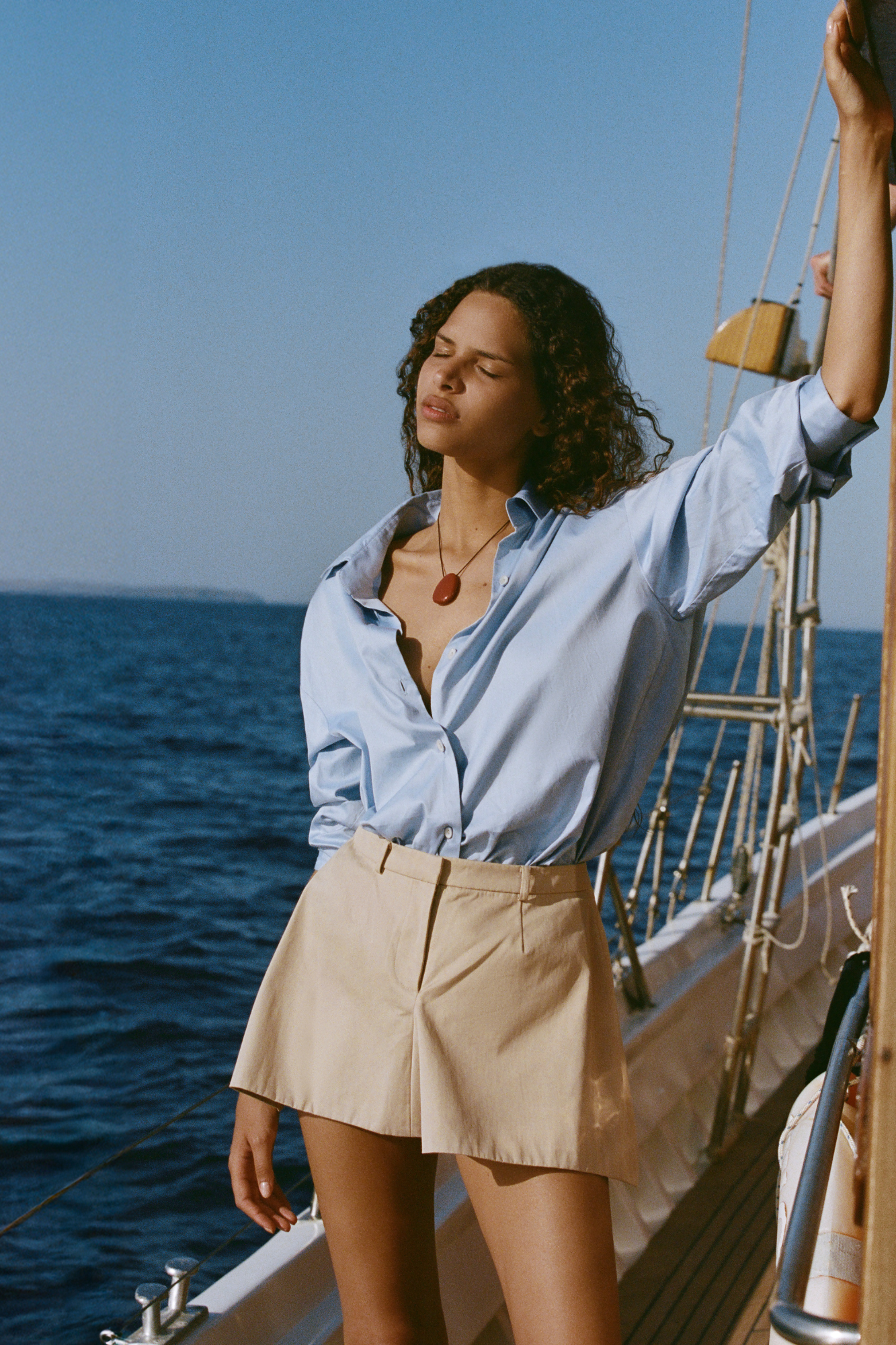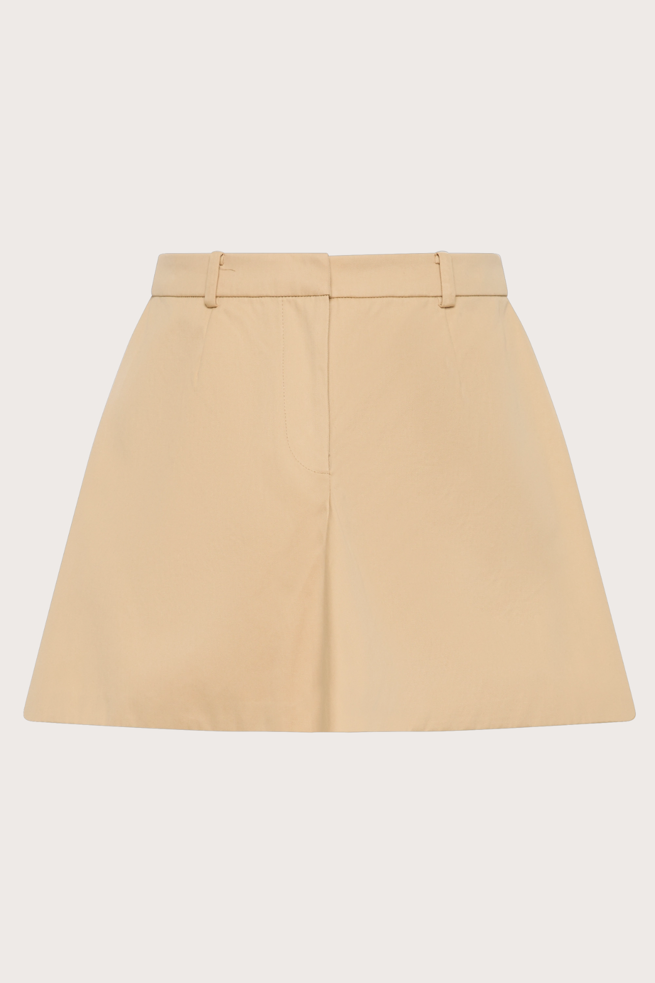 A structured high-rise mini skirt with a front fly opening and belt loops around the waist. Featuring a pleat through the front skirt and a a flared A-lined silhouette, it is designed from a crisp 100% organic cotton in a neutral hue. Style with a classic button-up shirt like the En Vau Oversized Shirt for a tailored approach to summer dressing